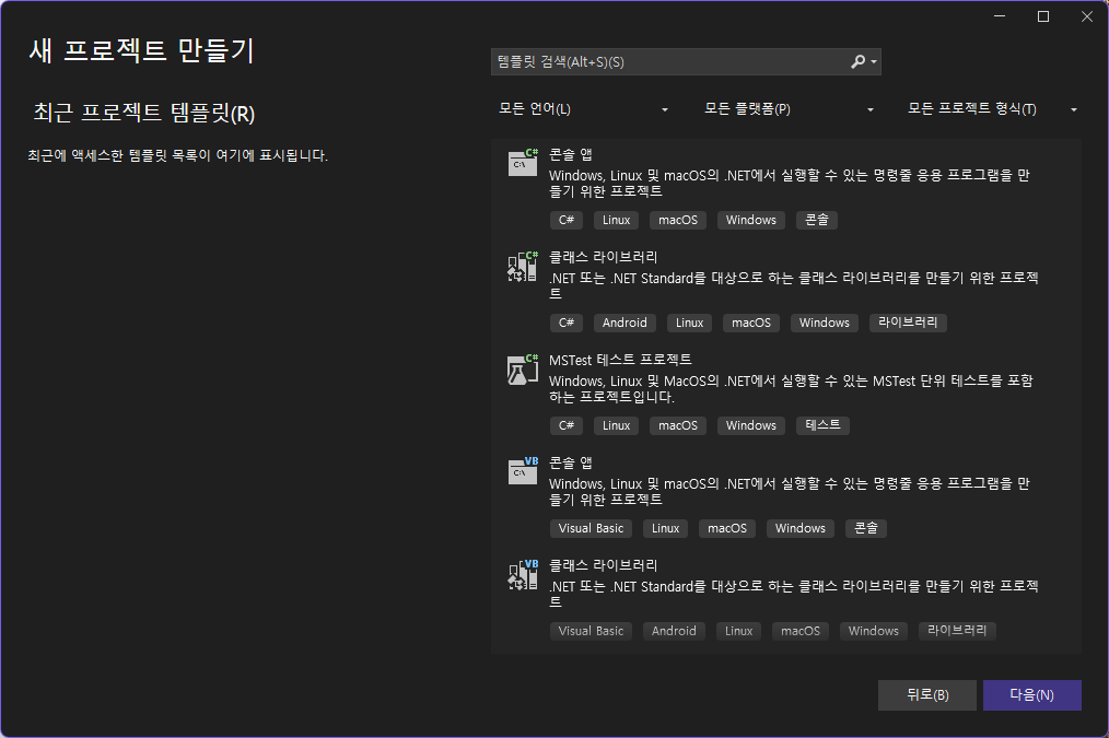 프로젝트 템플릿에서 콘솔 앱을 선택한다.